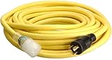 Coleman Cable 090588802 Locking Generator Cord, L5-20P to L5-20R, Lighted, 20-Amp Extension, 50-Feet